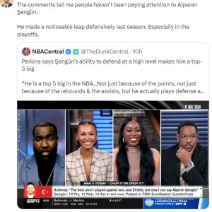 北京时间9月12日,名嘴帕金斯在ESPN的节目中谈到了火箭中锋阿尔佩伦-申京,结合申京上赛季的表现与今夏欧洲杯的表现,帕...